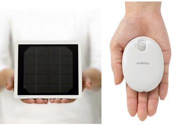 Engadget has a post about the Eneloop solar panels, and Amazon.com also sells the batteries.