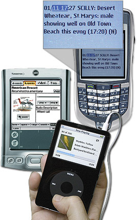 I spotted a front-page story (paid subscription required) in the Wall Street Journal this week about bird watchers who are using portable technology to find birds. Some are using wireless devices like Blackberries to receive bird proximity alerts, while others are using iPods and speakers to mimic bird calls.