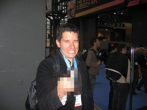 That said, things might get a little hectic around here and — as evidenced by the above picture at some trade show I’ve since forgotten — angry. We’ll try to tone down our pain and focus more on the launches, but if someone posts an expletive-filled rant about moronic booth staffers or fat guys wearing fishing vests and hogging three network connections in the press room, I won’t stop them. Remember: CrunchGear — flying coach, eating bad food, and being trampled by freebie-hunting vendors… so you don’t have to.