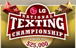 Turns out LG is hosting the world’s greatest sporting event. No, not the Super Bowl, but the National Texting Championship! Yes, this is THE premier event where all the best text messengers get together to see who can text the fastest. Those of you with a lot of free time on your hands and no girlfriend can apply for the semifinals in NYC and Hollywood, which take place March 31st. Whoever wins that nabs $10,000 and a trip to NYC for the finals where the winner will receive $25,000. Keep in mind this is national and not world-based. Otherwise we’d all have our asses handed to us by that Korean kid.