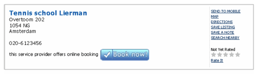 Founder and CEO Karin Loeffen let me poke around on their development site this afternoon and gave me an overview of the service. Libersy is building a central portal for businesses to create a profile and enter relevant information about their service (category, description, pricing, keywords/tags, etc.). The design is still raw but they’ve nailed the functionality, which includes good use of Ajax to minimize page views. Once they are in the Libersy system, they can add a “book this” button to their website (see screen shot) which links to a mini-booking page. The company will also give an embeddable code to service providers and allow bookings to be made directly from their websites.