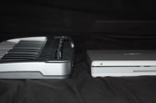 I realize size was a major consideration in this keyboard’s design, but I much prefer wheels to rocker buttons for pitch bend and modulation. The construction is definitely plastic-y, but I’ve been banging the hell out of it for a couple of weeks and taking it with me for impromptu jam/recording sessions, and it hasn’t fallen apart yet.