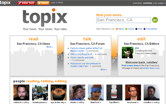 News site Topix.net will relaunch this evening under their newly acquired domain name Topix.com. They are also launching a new product that will allow readers to write and edit local news articles directly.