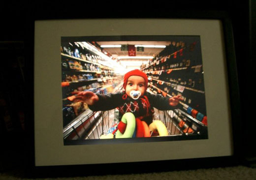 This SlickrFrame digital photo frame uses recently released open source software to display any Flickr photo tagged with the word “slickrframe.” The frame itself is made out of an old laptop and connects to the Internet with Wi-Fi. The software, Slickr, then combs Flickr for any and all images tagged with the magic word. When it finds one, the frame then displays the photo. Simple, lighthearted and fun. We could use more of that.