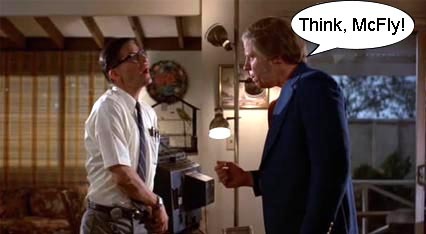Remember: In Back To the Future, Biff laughs off George’s McFly’s first failed punch, but while he’s laughing, George pulls back and knocks his smug, gloating ass out with one shot.