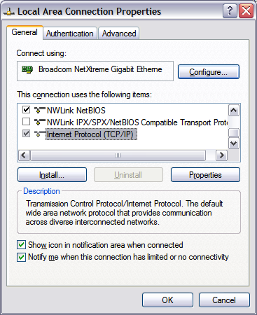 6. Once you have made your changes, click ok and allow your network adapter to reconfigure itself and reconnect to the network.