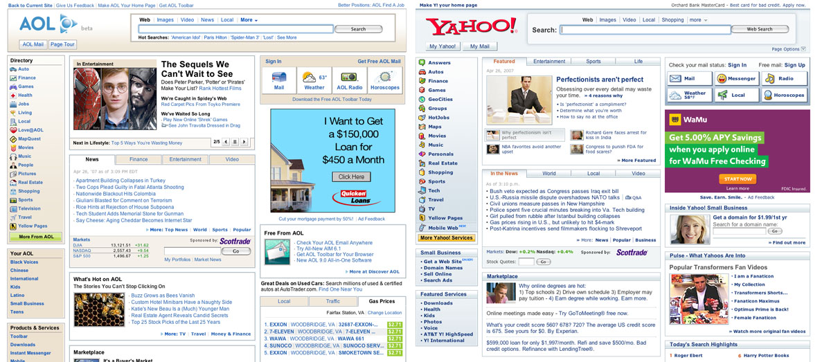 Nice portal…but it is nearly identical to Yahoo home page, which was redesigned last year. Click on the image above for a larger view. Internally, I’m hearing AOLers refer to the new portal as “the Yahoo Portal” although its official name is AOL 3.0.