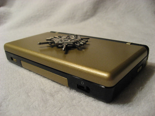 OK, contest over, give this guy the Best. Mod. Ever. award. It’s a Zelda Nintendo DS mod that brings Awesome (yes, as if it were an entity that could be brought) to your hands. Painted gold with a really intricate shield on the back, the mod pretty much just made my day. It even lights up behind the shield. Back shot after the jump.