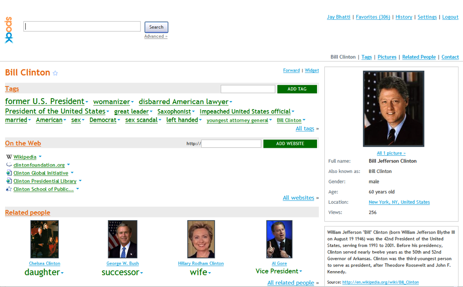 Spock will generate a lot of controversy because individuals are not in complete control of their profile. The community decides on descriptive tags for a person, so Bill Clinton’s profile includes such terms as “sex scandal” and “impeached United States Official.” Litigation is sure to follow from celebrity types not happy with their Spock profile, but Singh said flat out tonight that the site will firmly fight any attempts to defy the community’s decisions on descriptive tags. I’m betting there are one or two legal precedents out there on this, perhaps involving Wikipedia disputes.