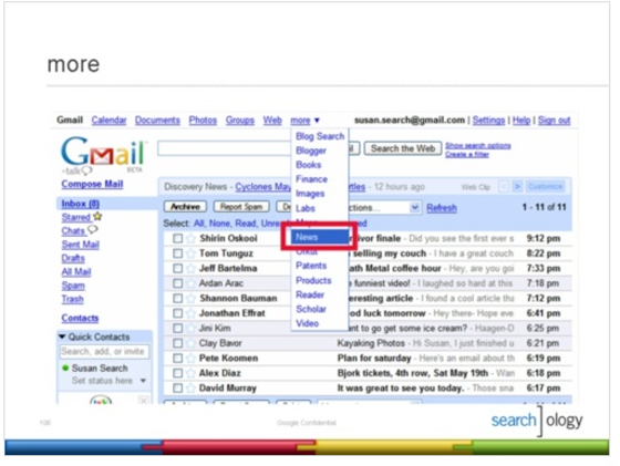Google’s Marissa Mayer announced what amounts to a first step towards a “universal search model.” This is effectively an integration of results from all of Google’s vertical search properties (video, images, news, maps, books, blogs, websites) which are presented for searches at Google.com and are ranked according to Google’s relevance engine. There are a number of example searches in my notes from the event earlier today. Videos from Google Video and YouTube are embedded directly in results for viewing.