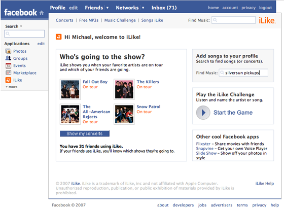 Competitor MOG is also popular, coming in currently as the fifth most popular Facebook application and just over 3,000 users.