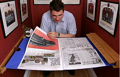 People who read while in the bathroom should be made to take a long walk off a short pier. I realize my opinions are controversial, but I apologize to no one, especially to Loo Read users. It’s a full table that you set up inside the bathroom to get some reading, ‘riting and ‘rithmatic done. And unlike half the stuff I write about nowadays, this is actually real. Not only real, mind you, but available in two different newspaper sizes, broadsheet ($192) and tabloid ($120). Tabloid’s probably best, since it leaves just enough room to process punny headlines like “Bats Not Enough.”