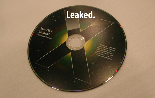 It looks like the WWDC beta of Leopard was leaked onto the Oink BitTorrent Web site. (I’m not about to download it, though, that’s for sure.) Here’s a screen shot. And another. And another. That last one made me laugh. Oops!