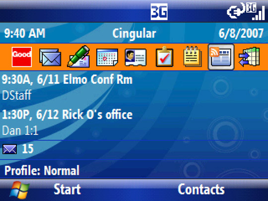 Motorola purchased the Good Technology Group last January and now has Good Mobile Messaging 5 to show for it. It’s a software package for smartphones that attempts to mobilize Microsoft Outlook or Lotus Notes. Professionals, so I’m told, actually use e-mail for work and not just sending funny links to your entire address book, so having it all nice and organized is key. Time is money; greed is good, etc. Business stuff. This particular version adds a few whiz-bang (for business users, that is) like an RSS reader and completely personalized alert sounds. Say you get an e-mail from Some Guy whom you associate with Some Sound—once he e-mails you, that sound is activated. Business users are craaazy.