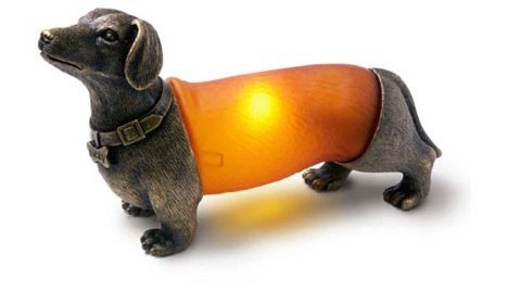 Oh my. What do we have here? Could it be a Weiner Dog Accent Lamp that compliments the coffee table perfectly? Could be! It looks like a dog, but it’s really a lamp with a beautiful amber glow! It’ll look perfect next to my Labrador Cigar Cutter.