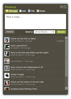 Today he’s made a bit of a public announcement about the project. It’s called Pownce, and he wrote about it a bit on his tumblr blog. The founding team of the company also includes Leah Culver, Daniel Burka, and Shawn Allen.