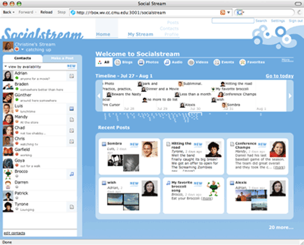 Google Operating System is reporting that Google is sponsoring a project at Carnegie Mellon University’s Human-Computer Interaction Institute to “rethink and reinvent online social networking.” The project is called Socialstream. Click on the image for a larger view.