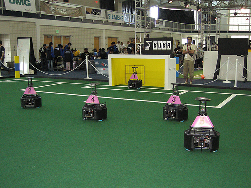 While real life soccer hooligans like me are content to watch the Copa America for their summertime football fix, several nerds thought it’d be a good idea to have robots play the beautiful game. Thus we have the RoboCup, a Georgia Tech-hosted festival of robots and the nerds who build (and love) them for the purpose of advancing the field of robotics. While soccer isn’t the only sport or activity that the robots participate in it’s clearly the best. Not just because I’m biased toward the sport, but because it’s the best way to showcase the robots’ mobility and so forth. Imagine, a robot Messi tearing through a robot Getafe defense. As Ray Hudson would say, Magic!