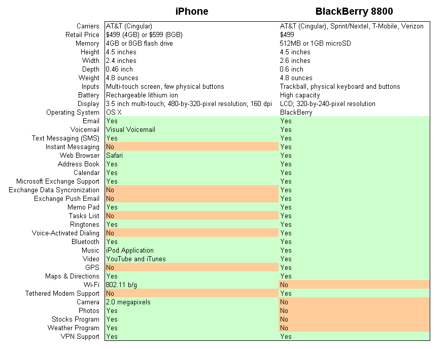 With the Wi-Fi-equipped BlackBerry 8820 coming soon to an AT&T store near you, business folks around the country will be faced with the decision of switching to the trendy new iPhone or upgrading to a more iPhonesque version of their trusty CrackBerry. To determine whether the grass really is greener on the iPhone side of the fence, we have chronicled the experience of a venture capitalist (who wishes to remain anonymous) who has been using an iPhone and a BlackBerry 8800 side-by-side for the past few weeks. His conclusion: despite the overall attractiveness of the iPhone, it lacks too many vital features to replace the BlackBerry as the corporate weapon of choice.