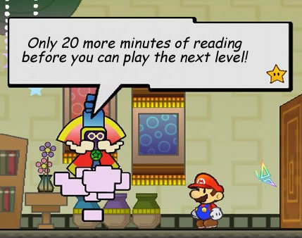 Super Paper Mario Read, read, read, jump, read, read, read, flip, read, read read, power off.