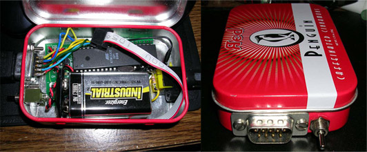 Every once and a while we’ll see some sort of Altoid container mod: one that has a built-in MP3 player, one that controls the weather, one that alerts you to approaching nerds, etc. This mod, created by one Greg Sanders, houses the video game Dungeons of Doom, an off-shoot of the classic Rogue. (Not that I’ve played it, but that I recognize its classicness, to invent a word.)