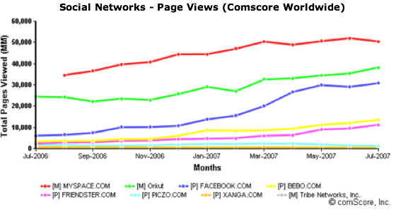 But, wow, take a look at the worldwide Comscore numbers – Facebook doubles to 31 billion monthly page views, but Orkut jumps all the way up to 38 billion (we’ve also included some of the other big social networks for comparison in this chart):