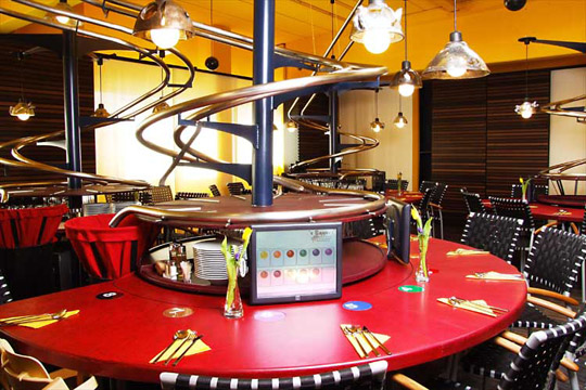 I hate dealing with waiters and waitresses, what with their stupid stares and demanding of tips. That’s why I’m thrilled to have read about a German restaurant that has replaced its human waitstaff with technology. Yup, no more wannabe actors and actresses, just the cold, unforgiving nature of automatic ordering and table service. The restaurant’s owner says that billions of euros could be saved each year in not having to pay for a waitstaff. Video clip inside…