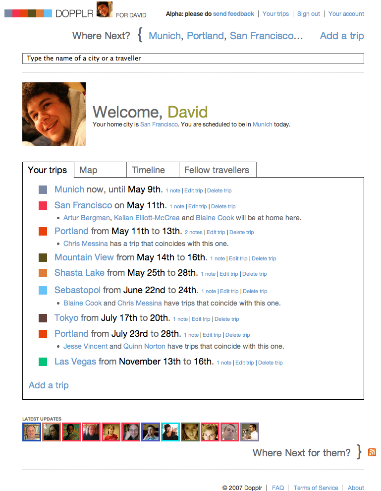 While not yet open to the public, the company claims that Dopplr’s users have already shared 110 million kilometers (70 million miles) of trips to over 2000 cities around the world.