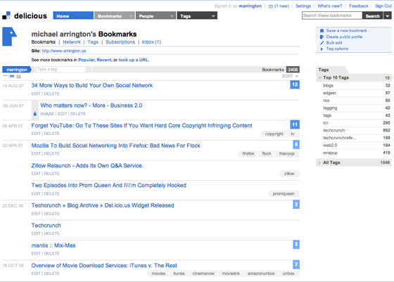 If you are invited, all of your existing bookmarks are imported to the preview, although any changes you make will be lost when the new service launches – so it’s just for trying out and giving feedback. Del.icio.us is saying that there is no guarantee that the final product will look exactly like the preview, since they are taking user feedback very seriously.