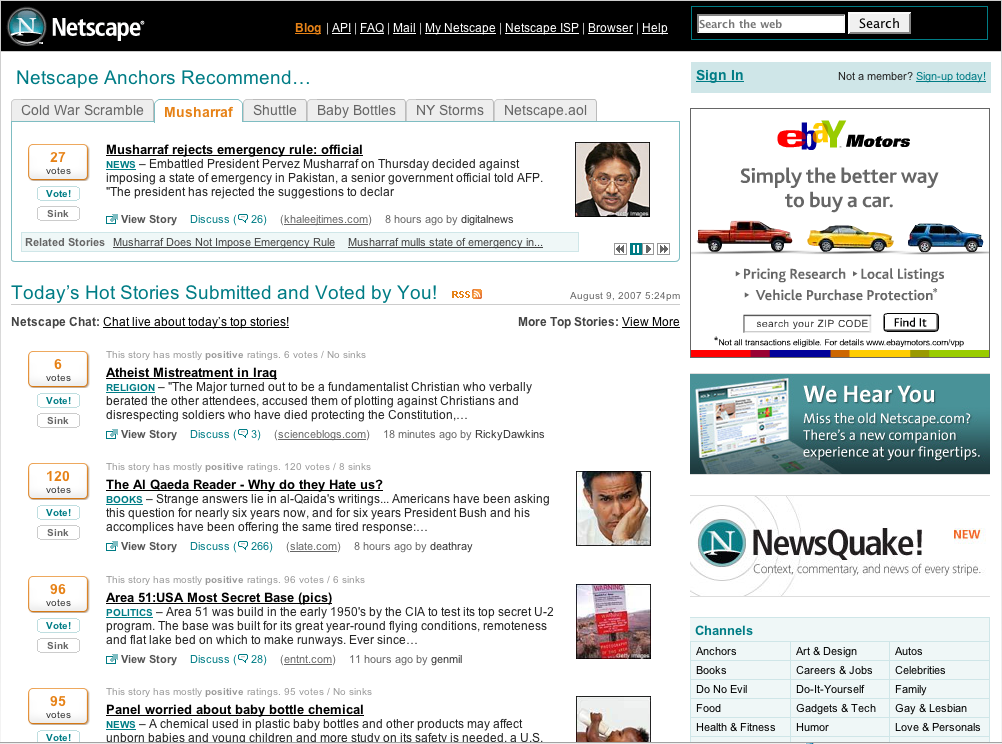 We received some feedback that people really do associate the Netscape brand with providing mainstream news that is editorially controlled. In fact, we specifically heard that our users do have a desire for a social news experience, but simply didn’t expect to find it on Netscape.com.