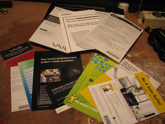 The preloaded software on the newer Sony laptops is a big problem. Big enough that it slows the computer down considerably. I spent over an hour uninstalling Norton Internet Security, Spy Something-or-Other, AOL, Napster, Microsoft Office Trial, a full version of Spiderman 3 that you can’t watch unless you pay to unlock it, and a whole bunch of other trial software. Read any other review of a Sony notebook that’s been released recently and you’ll read the same thing. It’s unbelievable.