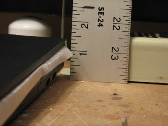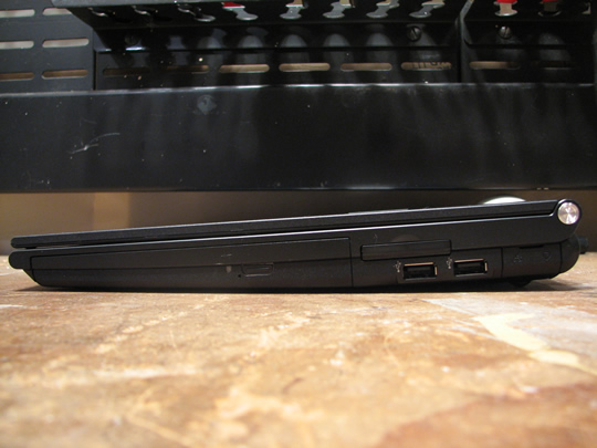 I initially had my heart set on a less-than-three-pound notebook and, having owned a couple in my day, can tell you that there’s a big psychological difference between three and four pounds. That being said, at about four pounds, this notebook isn’t a pain to schlep around at all. For all intents and purposes, it’s roughly the size of a MacBook minus an entire pound. It’s a lot easier to lift and/or carry in one hand than a MacBook and the ultra thin screen is truly remarkable. Finally, while the MacBook is uniformly shaped, the Vaio is more of a wedge design. It’s 1.5 inches at the back and 1 inch at the front.