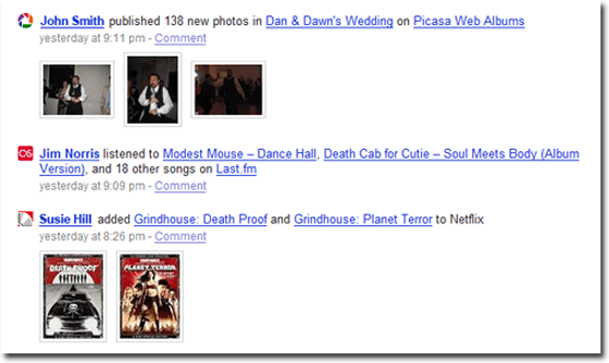 When you sign up for FriendFeed, you tell it the social networks you belong to, widely defined (Facebook, Last.fm, Flickr, Netflix, Digg, etc.). It tracks what you are doing on those networks, aggregates it all and provides you and your friends with a personalized feed of the data.