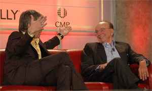 Update: $300 million in profit next year for MySpace? In response to a question, Murdoch said News Corp. should generate $5 billion or so in ebitda next year “if the economy half holds up.” He then said MySpace should contribute “$200-$300 million” of that.