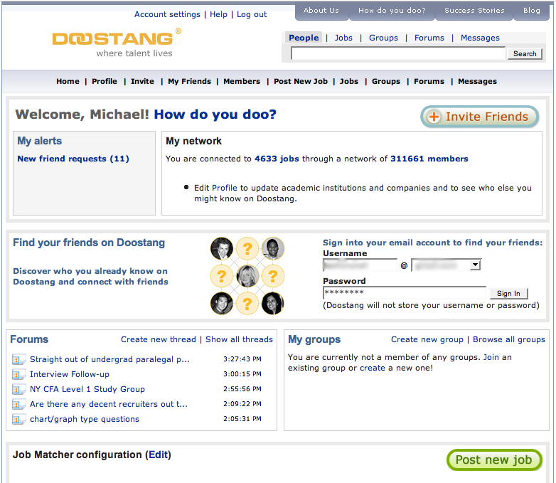 Currently Doostang has just over 300,000 registered members and 4,633 jobs listed. Get your invitation to Doostang from InviteShare here.