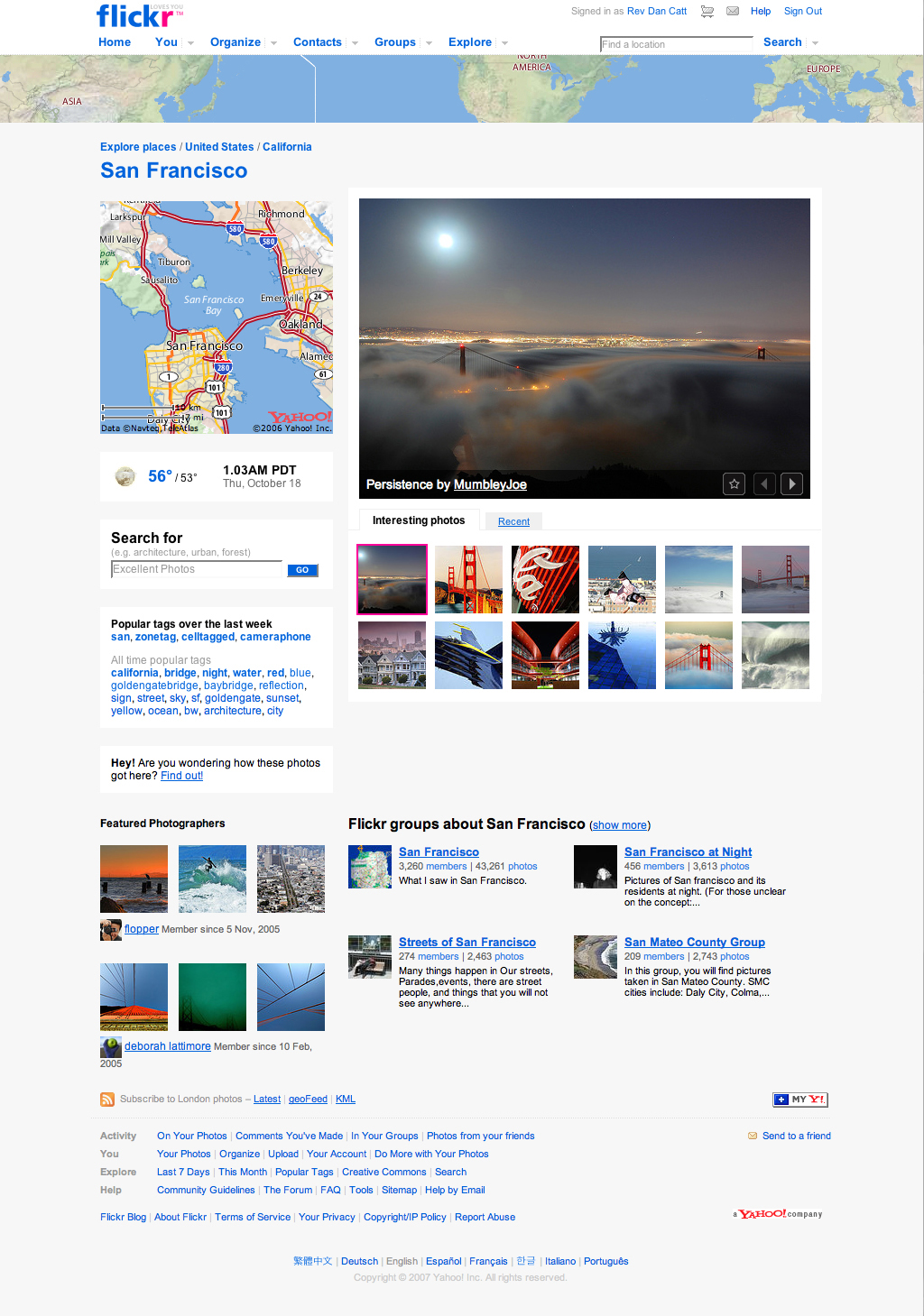 Now this is more interesting. Flickr is announcing “Places Pages,” which are dedicated pages that provide users with specific information about places. We’ve uploaded an overview PDF to Scribd, here.