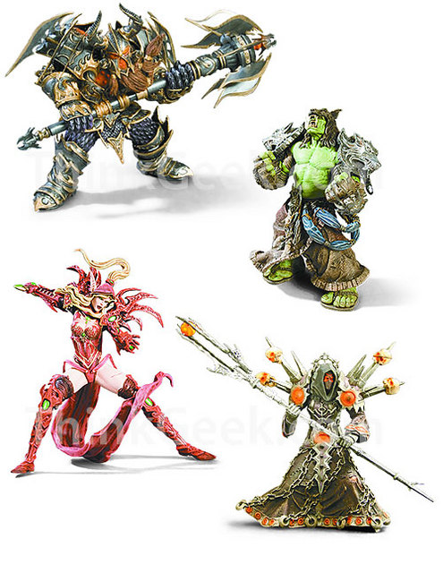 I just came across these beauties on ThinkGeek and boy am I ticked off. Looks like ThinkGeek is completely sold out of the World of Warcraft action figure set. For $49.99, you get an Orc Shaman, a Blood Elf, a Dwarf Warrior and an Undead Warlock. Each figurine is around 7-inches tall (minus the Dwarf) and is incredibly detailed, much like a Games Workshop piece.