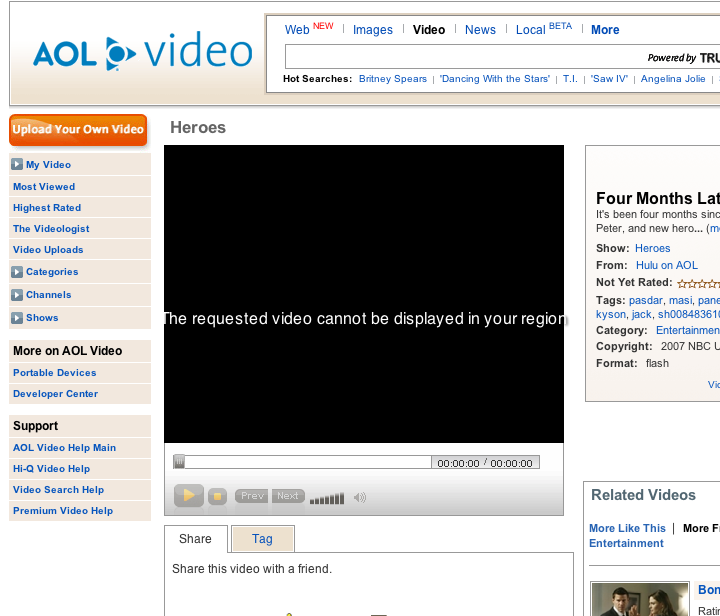 Update: Hulu videos are already available on at least one partner website, AOL. Check them out here If you live outside of the US, however, you may be out of luck. Duncan, who lives in Australia, sees this error message when he tries to view a Hulu video on AOL.