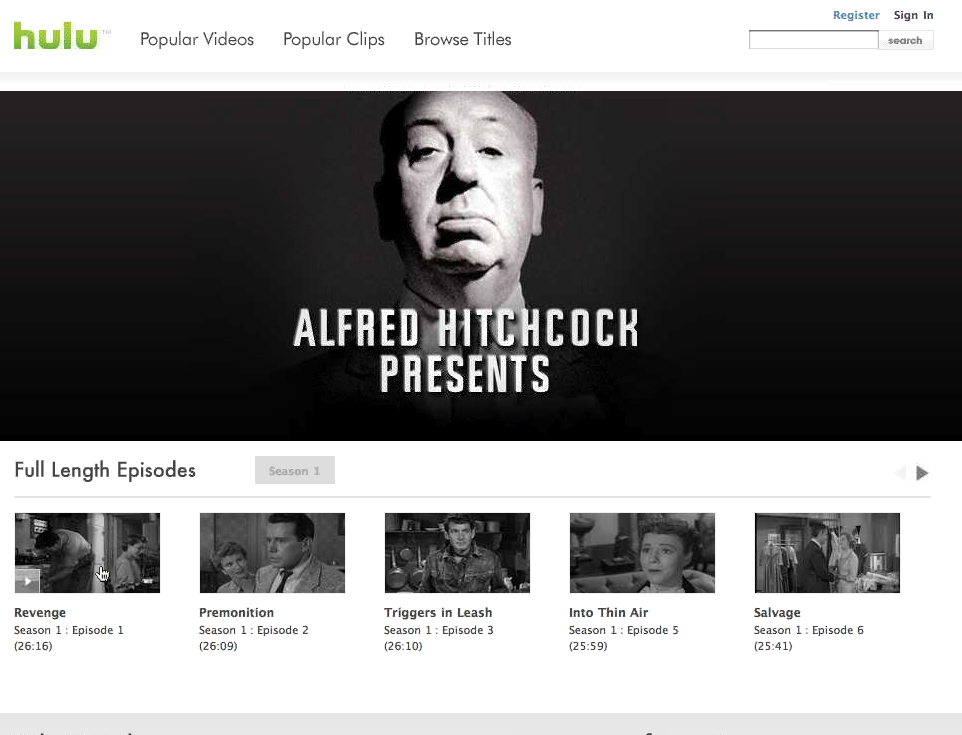 This is Hulu’s greatest weakness. Try as it might, it has not yet escaped the programming mentality of broadcast television. Hulu still imposes a schedule of sorts on Web viewers, even if that schedule comes with a five-week window of flexibility. But on the Web, five weeks may not be enough. Appointment TV just doesn’t make sense in a medium where time slots are thrown out the window and the available inventory of videos is counted in the millions. Hulu may be limiting its appeal by not keeping all of its videos up indefinitely (who knows when a particular video clip could take off as the next viral hit?). It also will be interesting to see how this limit affects embedded TV shows, which may just stop functioning after too much time. Similarly, movies and short clips will be added and removed from the site in an undisclosed (or uncertain) manner, although Hulu reps say they will try to add movies that are in demand. Hulu will not only have new releases but older movies as well, and only ten movies will be available to start.