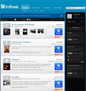 St. Louis based IMThere, which I discovered on TechnicallySpeaking, is a little different, and joins MadeIt as the most recent startups to try to crack the event nut. IMThere is focused less on getting invitations to events out to friends and talking them into accepting. Instead, it allows users to upload events, focusing less on the private invitation stuff (parties, dinners, etc.). Instead, the site’s early content is mostly about public events like concerts, video game releases, TV premiers, movie releases, etc.