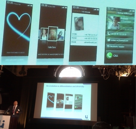 Little is known about these spy shots of a new interface designed for Sony-Ericsson’s UIQ. What I see is a touch-based interface that is half iPhone, half HTC Juno. You would think a guy snapping photos during a corporate presentation would be willing to cough up a little more information!