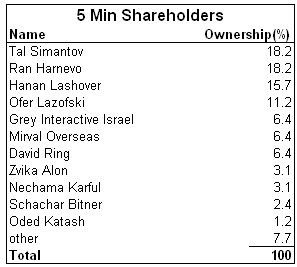The company previously raised $300,000 in angel funding. For those entrepreneurs who are curious about the economics of angel rounds, the details around 5min are interesting. In their case, it was ugly. An Israeli (print) magazine called Globes recently got their hands on the capitalization table of 5min and published the details. The angels ended up with nearly half the company for that $300k, leaving the three founders (the first three on the list) and all other employees to split the rest.