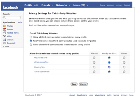 Beacon is the internal project name at Facebook around an effort to work with third parties and gain access to very specific user data. An example may be a purchase of a book or DVD from Amazon. Under Beacon, the fact of that purchase will be sent to Facebook and automatically included in the user’s News Feed.