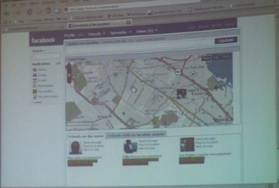 I was able to take a few camera phone pictures during a demo of the product last week at Brickhouse. The resolution isn’t great (in fact it’s terrible), but you can get a feel for what the platform will look like. I’ve also included a shot of a Facebook application, below.