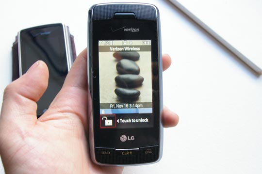 Let’s just get down to the nitty gritty. The VX10000 runs on Verizon’s EV-DO networks so everything is fast, but it can be clunky and video playback was bad. GPS is always a great feature to have, but when it can’t even find you in the airport with full bars that’s a bad sign. I’ll let this one slide since I did test it while waiting in the airport because I know it works outside. The touch screen, while it’s nice and bright and big, can sometimes be unresponsive or just slow. The 2-megapixel camera isn’t that great and it lacks a flash so don’t expect too much from it. Would it kill LG to add Wi-Fi? The Voyager’s predecessors always had great speakers and the VX10000 is no different.