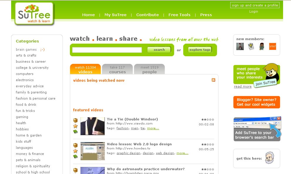 A few months ago Duncan gave instructional video aggregator SuTree an overall positive review, but did point out that “navigation is very much old school and doesn’t jump out and hit the casual visitor with a flurry of Ajax and DHTML goodness”.