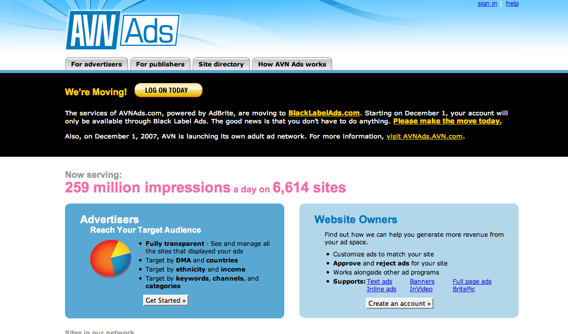 I caught up with AdBrite co-founder Philip Kaplan on the phone to get his take. He notes that all the current 6,614 sites that run AVN Ads have AdBrite code on them, and that is going to stay there unless they take it off. “If you were an AVN Ads user before, you are automatically a BlackLabelAds user.” But he is really not too worried about losing the porn business because it is not where he sees the future: