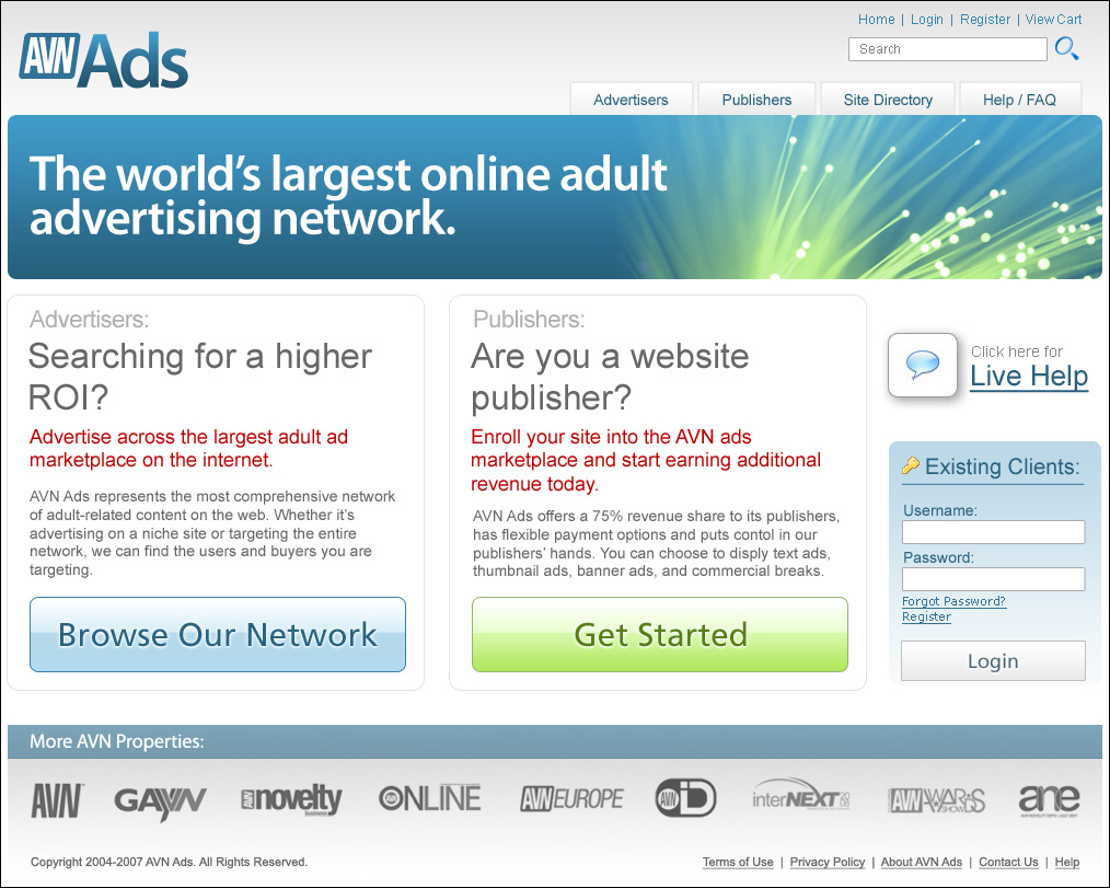 Since December, 2004 AdBrite has been supplying the technology, billing, and payment platform for AVN Ads. Now that deal is going to Etology, who will manage the site from now on and relaunch it with a new look. Before that happens, AdBrite is trying to redirect all of its members to its own new adult advertising sub-brand, BlackLabelAds. If you go to the AVN Ads Website, you will see a big pop-up trying to switch advertisers and publishers with existing accounts over to BlackLabelAds. Yet, according to Etology, it has already secured the loyalty of 1,268 (and counting) of the biggest porn sites on AVN Ads, including YouPorn, PornTube, and RedTube. (Out of 6,614 total). Those 1,268 sites account for 108 million daily impressions (or 42 percent of AVN Ads’ total, and 13 percent of AdBrite’s total). The other 151 million impressions are still up for grabs. Etology is trying to lure them with a 75 percent share of revenues, versus the 70 percent they got from AdBrite.