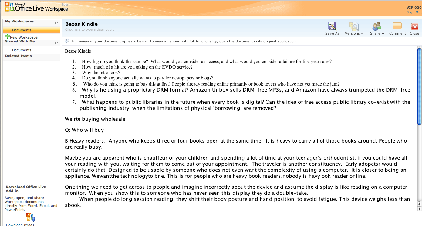 Granted, this is version 1.0 of a beta. It will get better. One of the Microsoft execs who visited made it clear to me that the company’s goal is “bridge the gap between the online and offline world so that people don’t have to care where a document lives.” He also suggested online editing capabilities would be coming “maybe next year.”