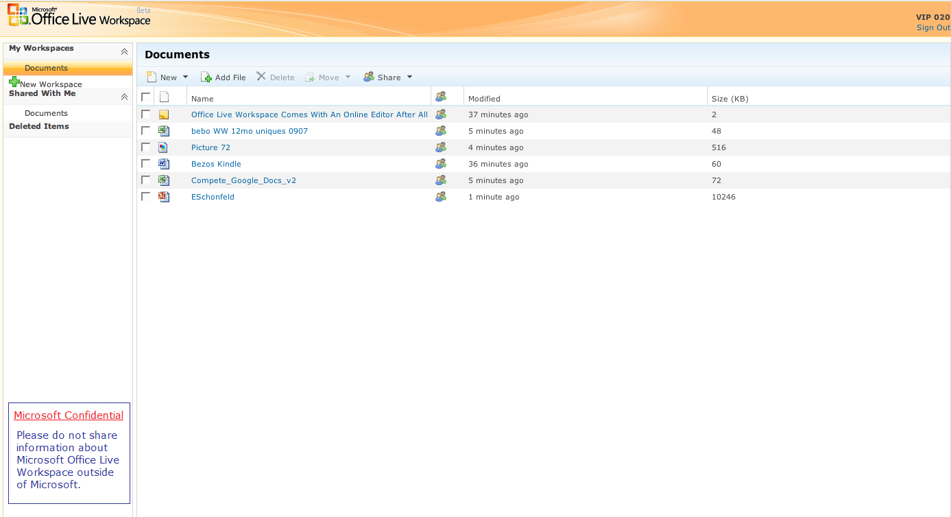 Even though Microsoft announced it two months ago, the (still-private) beta for Office Live Workspace launches today. That means beta users can finally start testing the service. You can sign up here to get on the waiting list for an invite (Windows Live ID required). Microsoft briefed me on the service and gave me access to a demo account.